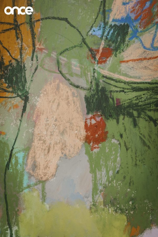 คู่สีและลวดลายฟรีสไตล์ดูราวกับว่าศิลปินสาดอารมณ์แบบสุดตัว เหมือนเธอกำลังระบายเรื่องราวที่อัดแน่นอยู่ในใจใส่ลงไปบนผืนผ้าใบขนาดใหญ่ดูคล้ายเหมือนเสียงตะโกน เราว่านี่แหละคือเอกลักษณ์ของ บี–ชนิดา งานของเธอไม่ใช่แค่ภาพวาด แต่คือร่องรอยของการมีชีวิตอยู่ด้วยความซื่อสัตย์กับความรู้สึกตัวเอง