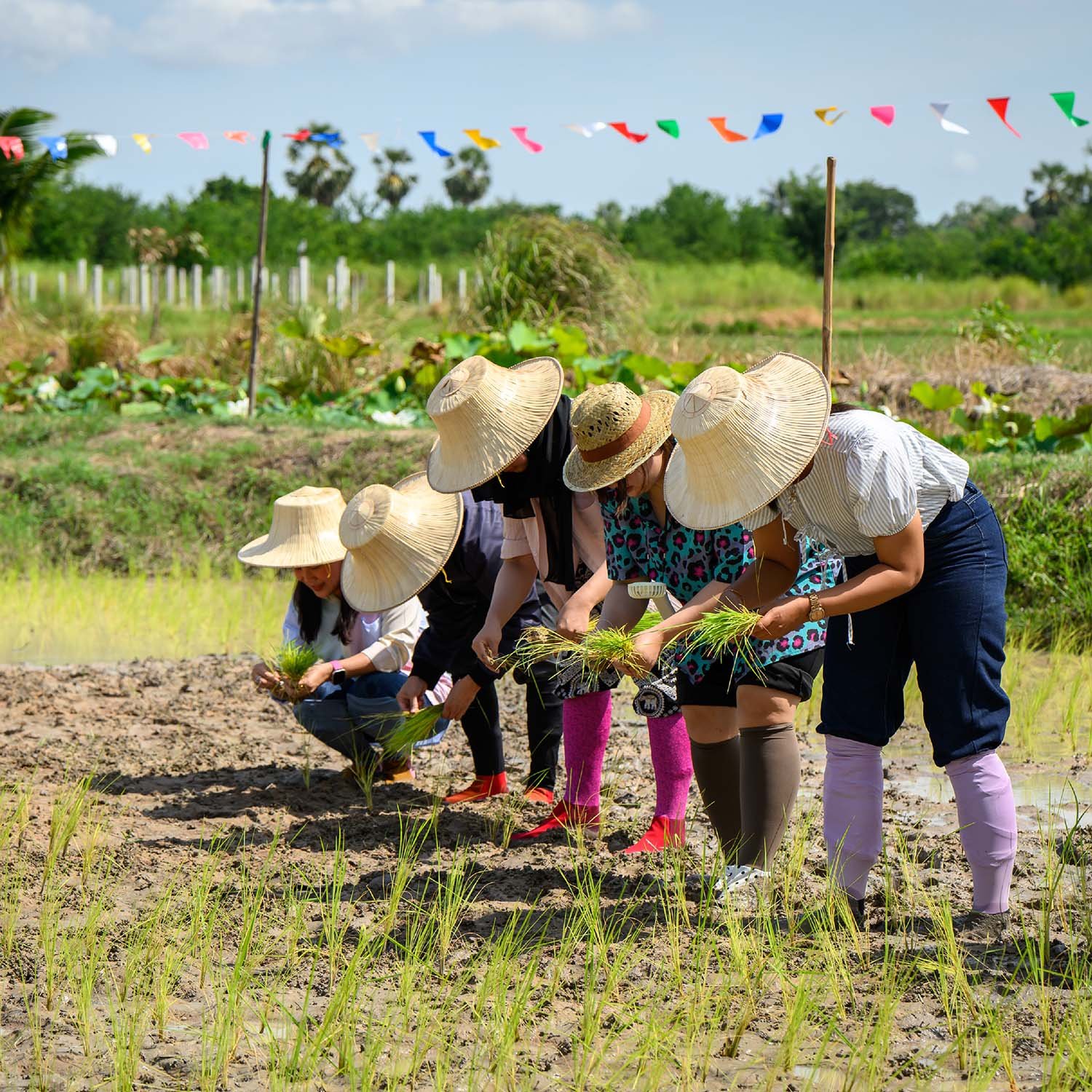 ภายในร้านตกแต่งไปด้วยโทนสีขาว และสีน้ำตาลของไม้ ตามหนังสือที่เรียงรายล้อมรอบทำให้ที่นี่อบอุ่น และเป็นยิ่งกว่าพื้นที่นักอ่านคือพื้นที่พบปะ สนทนาของขาประจำ เพราะลูกค้าหลายคนที่เข้ามาต่างติดใจจนต้องกลับมาแวะเวียนอีกซ้ำๆ แถมเจ้าของร้านเองก็เป็นมิตร การพูดคุยจึงต่อยอดกลายเป็นสังคมเพื่อแลกเปลี่ยนเรื่องราว ไปจนถึงเกิดโครงการในชื่อ ‘ทำนาประสา Booktopia’ ที่ไม่ได้จัดบ่อยนัก โดยเจ้าของร้านจะชักชวนนักอ่านขาประจำมาทำนา และยังมีกิจกรรมอื่นๆ ซึ่งจะจัดเพื่อผูกสัมพันธ์กับนักอ่านและผู้ที่แวะเวียนอยู่เรื่อยๆ