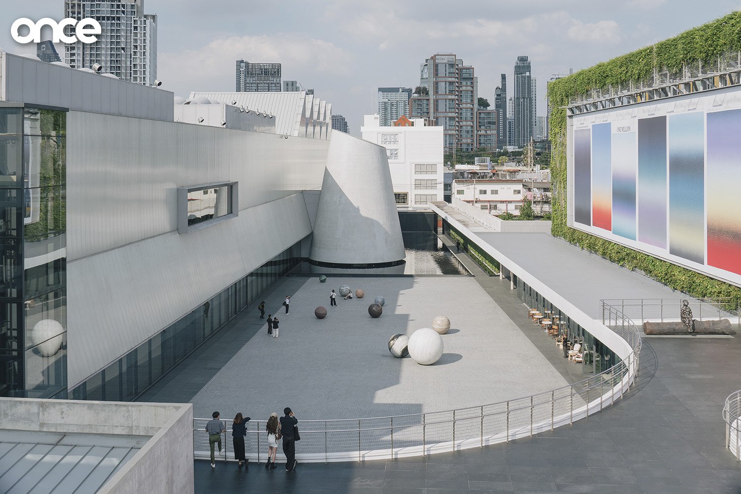 ความจัดจ้านที่ว่าคือเลนส์จาก ONCE เอง ที่เราอยากนิยามว่าดิบบางกอกมีความจัดจ้าน เพราะเราสัมผัสได้ถึงแพสชันอย่างแรงกล้าของความต้องการที่จะส่งต่อความหลงใหลในศิลปะให้แก่ผู้คน ผ่านการออกแบบพื้นที่ตั้งแต่ทางเดินเข้าพิพิธภัณฑ์ที่ถูกรายล้อมด้วยสระน้ำเล็กๆ อาคารเบื้องหน้าที่มีทั้งอาคารนิทรรศการหลัก อาคารรับรองสำหรับคนที่อยากเข้ามานั่งพักอย่างร้าน ‘วัตถุดิบ’ และลานตรงกลางพิพิธภัณฑ์ที่จัดวางหินก้อนมนน้อยใหญ่เป็นเหมือนดวงดาวในจักรวาลที่เป็นผลงานของ ‘อลิเซีย ควาเด’ รวมถึงพื้นที่ที่เป็นจุดสูงสุดของที่นี่ ซึ่งจัดแสดงผลงานถาวรของ James Turrell ชื่อว่า Straight Up ซึ่งเป็นโครงสร้างแรกของศิลปินในประเทศไทย ที่มีให้ผู้ชมได้มองท้องฟ้ายามเย็นพร้อมกับการจัดแสงสีให้น่าสนใจในแบบที่อยากให้ทุกคนลองสัมผัสด้วยตัวเอง