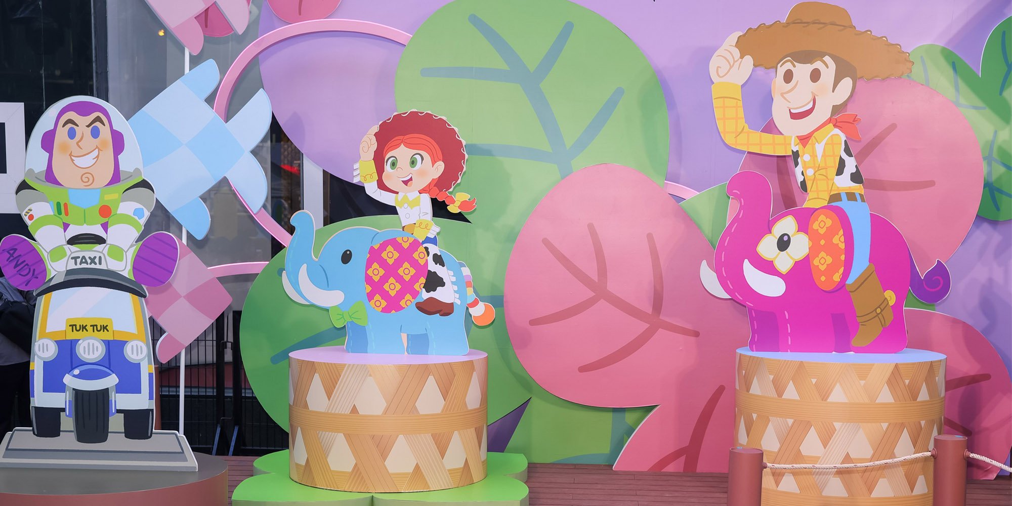 นอกจากออกแบบคาแรกเตอร์ใหม่ ตู่ยังพา Toy Story ไปอยู่ในพื้นที่แบบไทยๆ อย่าง “ตลาดน้ำ” ที่เต็มไปด้วยของคุ้นตา เช่น ชามตราไก่ จิ๊กซอว์ลายไทย และมวยไทย ความน่ารักแบบไทยร่วมสมัยที่ดูแล้วอบอุ่นแต่น่าสนใจ และยังเชื่อมโยงกับโลกดิสนีย์ได้อย่างลงตัว