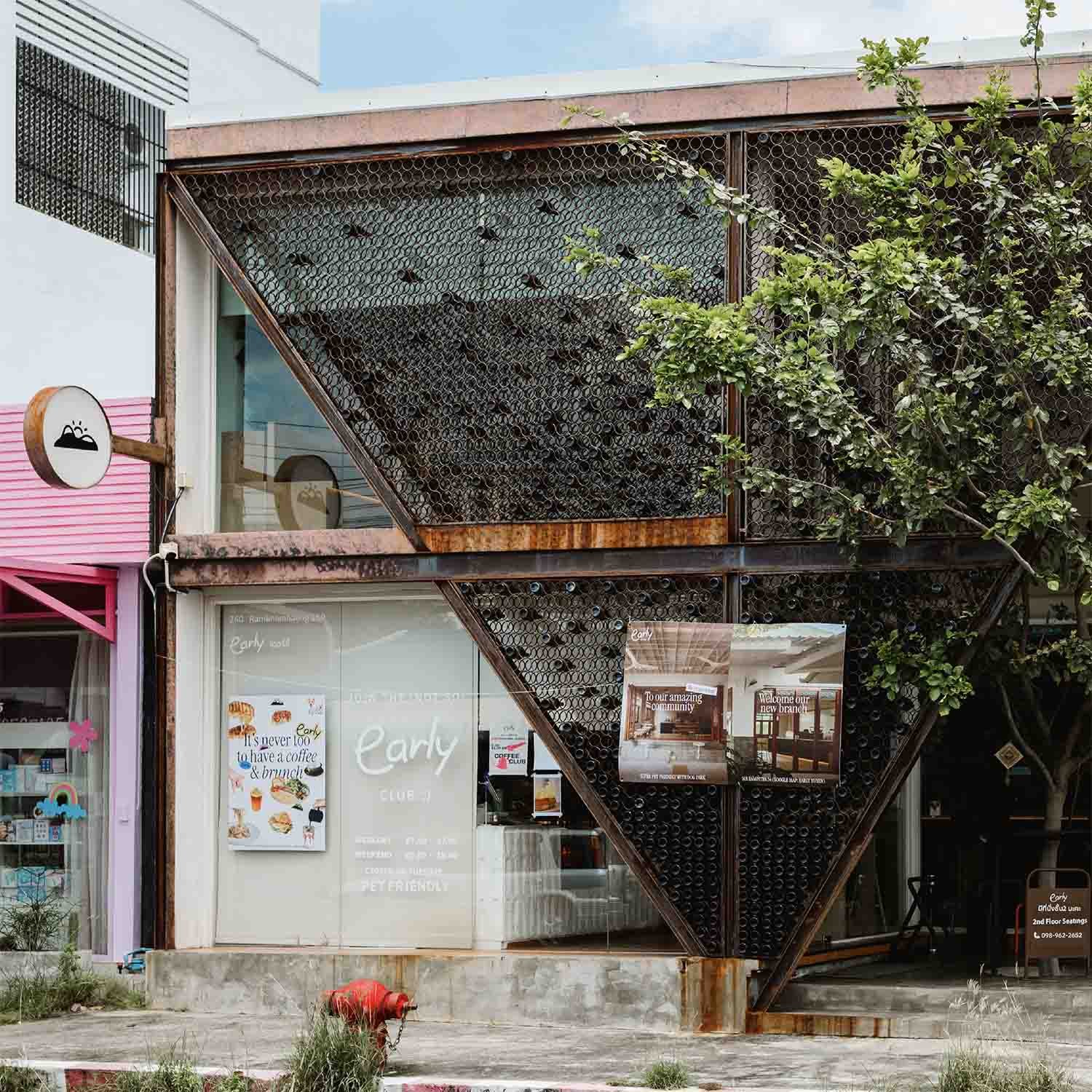 ตลอดทางเดินรอบๆ ร้านรายล้อมด้วยต้นกาแฟ ต้อนรับผู้มาเยือนด้วยความเขียวชอุ่ม ตัวร้านจะผสมผสานความโลคอลแต่ยังคงความเท่ด้วยบาร์สีดำตรงกลาง รอบๆ ร้านเปิดโล่งให้เราได้สูดอากาศอย่างเต็มปอด รับลมเย็นตลอดทั้งวัน เขาว่ากันว่าพื้นที่ตรงนี้อากาศเย็นตลอดทั้งปีเชียวนะ
